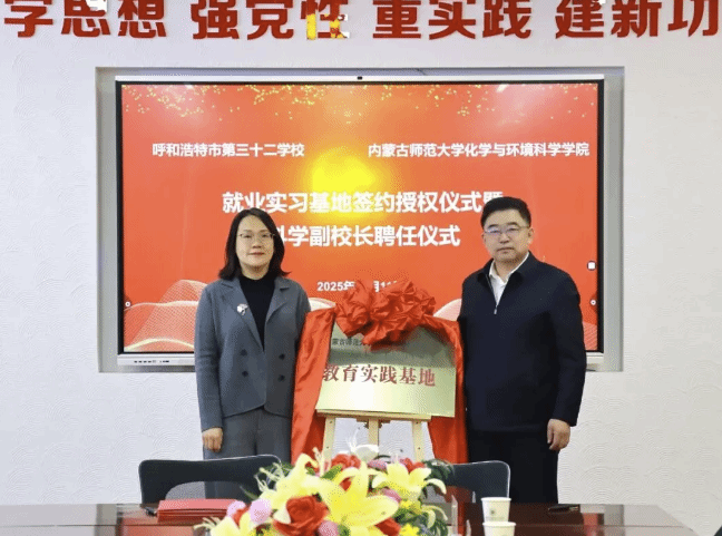 与呼和浩特市第三十二学校共建师范生教育实践基地签约暨科学副校长聘任仪式在呼和浩特市第三十二学校成功举行。呼市第三十二学校校长胡志远、党总支书记郭兰兰、副校长刘芳、校长助理武楠、党政办主任刘琪琳等领导班子成员、化学组全体教师,情色直播
