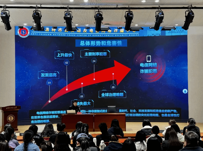 在赛罕校区信息楼学术报告厅举办反诈安全专题讲座。本次讲座特邀呼和浩特市公安局反诈中心赵书锐警官主讲,全体研究生参加。